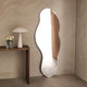 Its asymmetrical shape with smooth, polished edges creates a sleek floating effect when mounted on the wall. With generous dimensions of 100 cm width × 180 cm height, this mirror works as both a practical full-body mirror and a striking decorative element.